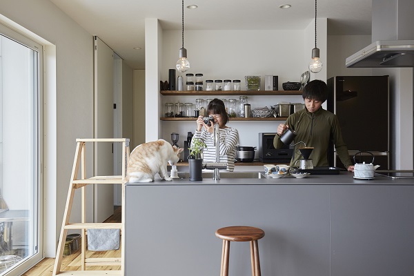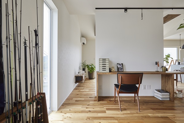 キッチンはグラフテクトを採用し釣ってきた魚をさばいたり、燻製器や焚火台を置いたりと気兼ねなく趣味を楽しめる場所になっています。