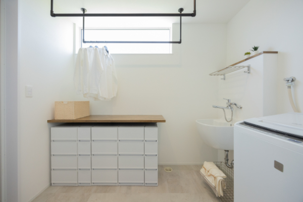 ハイサイドライト(高窓)のある、明るいランドリールームになっています。