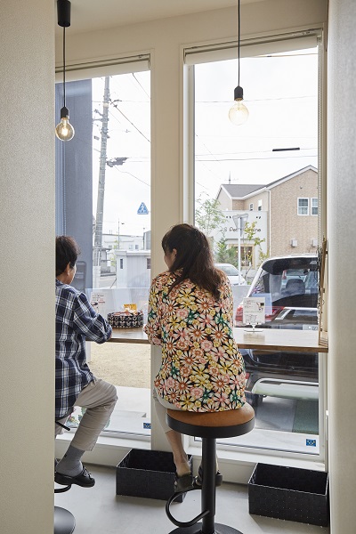 大きな窓から外の景色を眺め、お茶を愉しむことができる空間です。