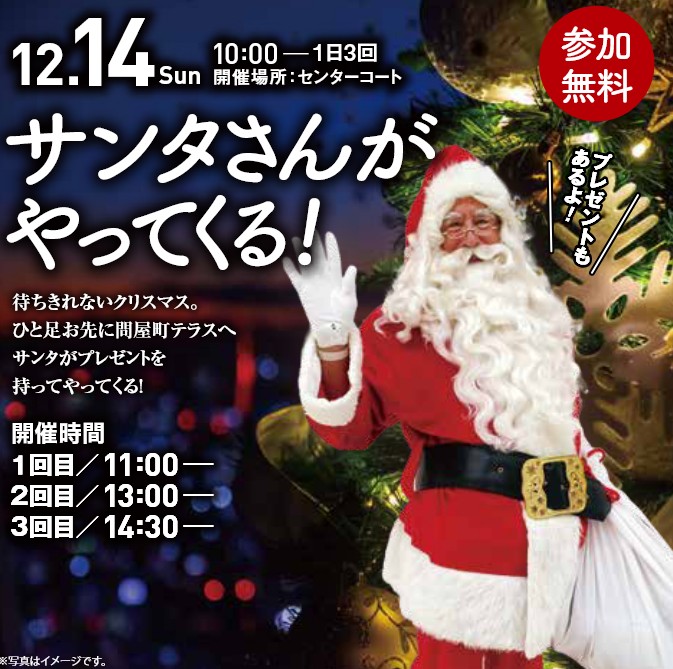 ひと足お先に問屋町テラスへサンタがプレゼントを持ってやってきます! -