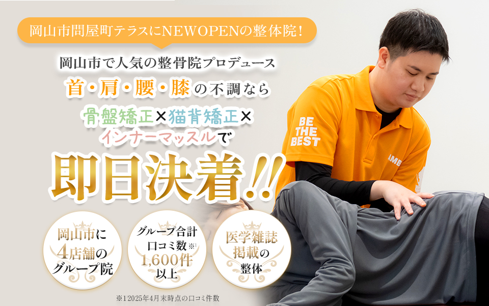 【NEWOPEN】岡山市で人気の陽だまり鍼灸整骨院プロデュースの整体院が施術体験会!ポキポキしない優しい整体で、首/肩/腰/膝などの慢性症状や姿勢改善をサポート。医学掲載のBMK整体で幅広い悩みに対応。専任スタッフが丁寧に施術します。