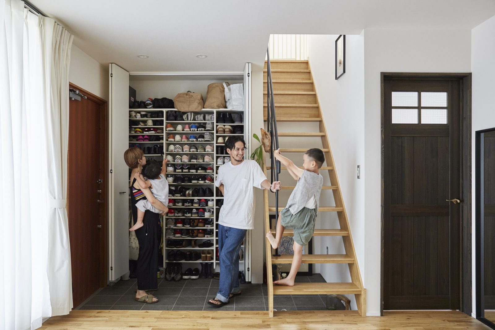 夫婦ともに大の靴好きでたくさんのシューズが入るシューズクローゼットになっており、その日履く靴を選ぶのも楽しいイベントです。