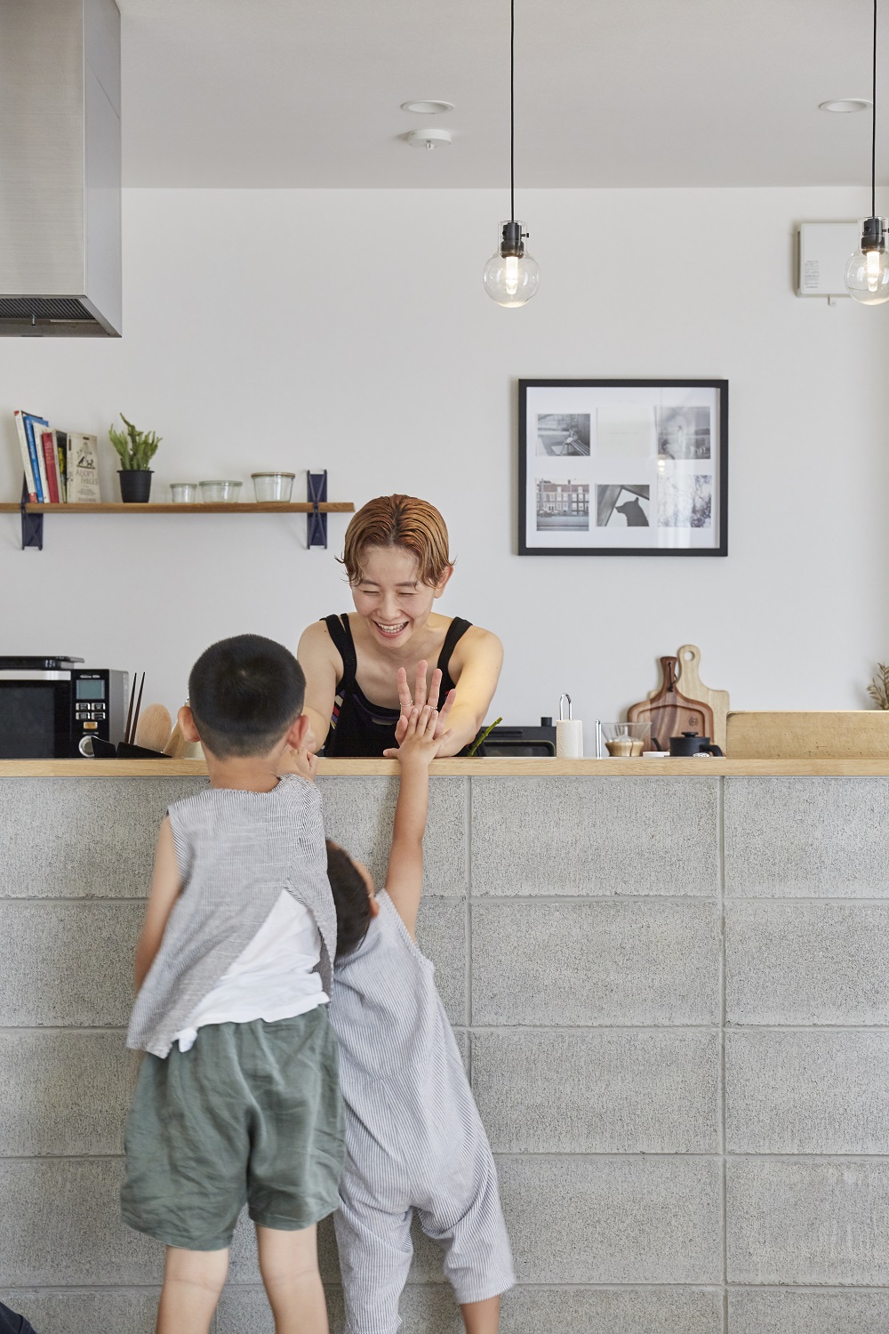 スタイリッシュなステンレスキッチンを採用しコンクリートブロックで壁を立ち上げ、無機質な空間を構成しています。