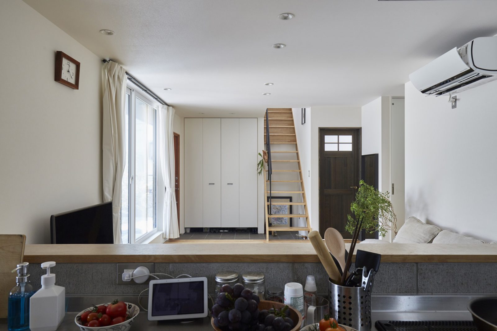 リビングとつなげて解放感を演出した土間は子どもの遊び道具や自転車を置ける広々した空間です。
