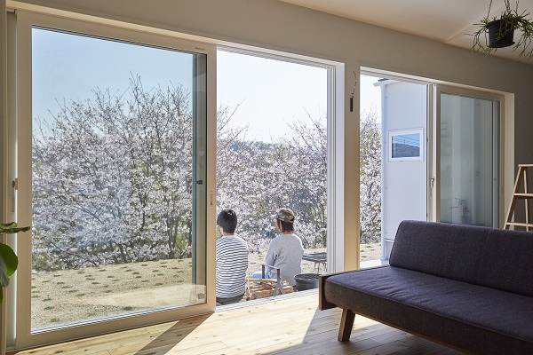 リビング一面の大きな窓は光をもたらせてくれるばかりではなく、外とのつながりを持たせてくれます。