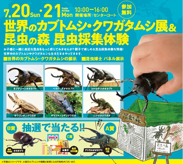 ※写真、イラストはイメージです。 ※展示カブトムシやクワガタムシの種類は変更になる可能性がございます。 |