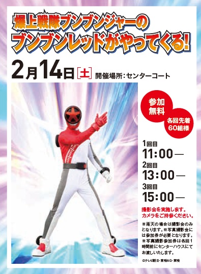 爆上戦隊ブンブンジャーのブンブンレッドがやってくる!さらにヒーローペタペタ焼き&ヒーローグッズ抽選会も同時開催!