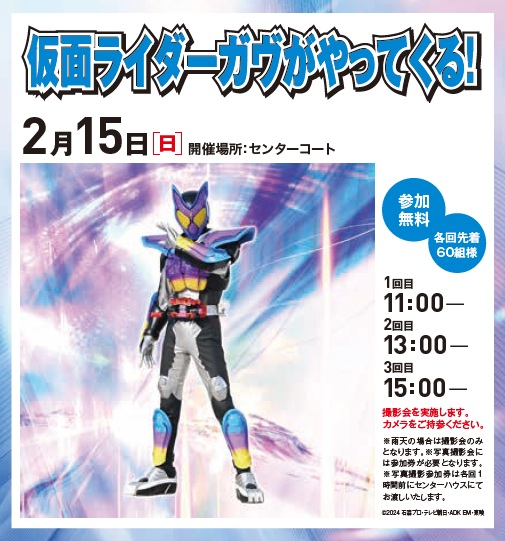 仮面ライダーガヴがやってくる!さらにヒーローペタペタ焼き&ヒーローグッズ抽選会も同日開催!