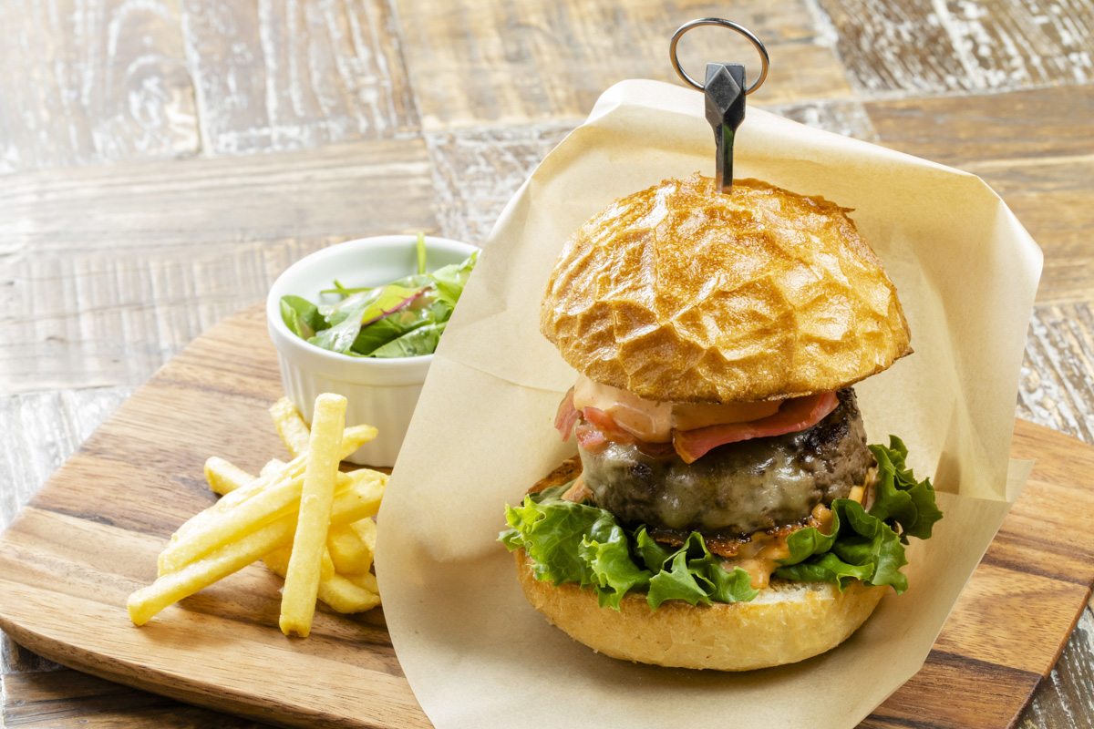 国産牛を贅沢に使った「KHCバーガー」など質、味ともにワンランク上のフードメニューに加え、
